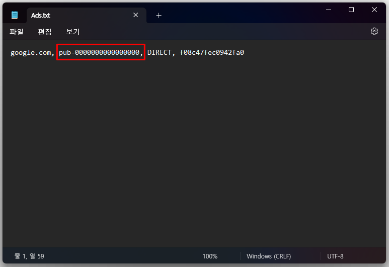 우선, Ads.txt 를 등록하기 위해 파일을 만들어야 한다. 메모장 또는 텍스트 편집기를 열어 아래 박스에 들어있는 내용을 복사해서 붙여준다.