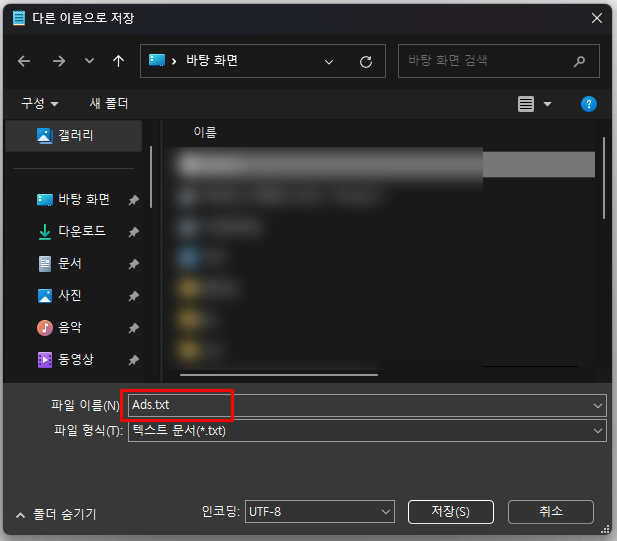 파일 저장시, 파일명은 Ads.txt 로 입력해준다.